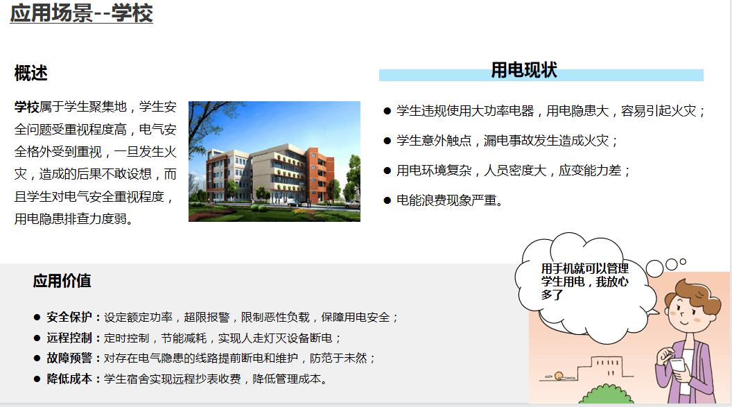 政府大楼管理、园区管理、农业大棚、养老院、写字楼、宿舍、酒店、医院、工厂、社区、文博单位、充电桩、银行、矿业、农场等
